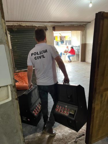 Há alguns dias os policiais civis da 1ª DDP iniciaram uma investigação para apurar denúncias anônimas informando que, em determinados estabelecimentos comerciais, existiam máquinas caça-níqueis, ou seja, havia a exploração de jogos de azar, caracterizando, assim, contravenção penal.