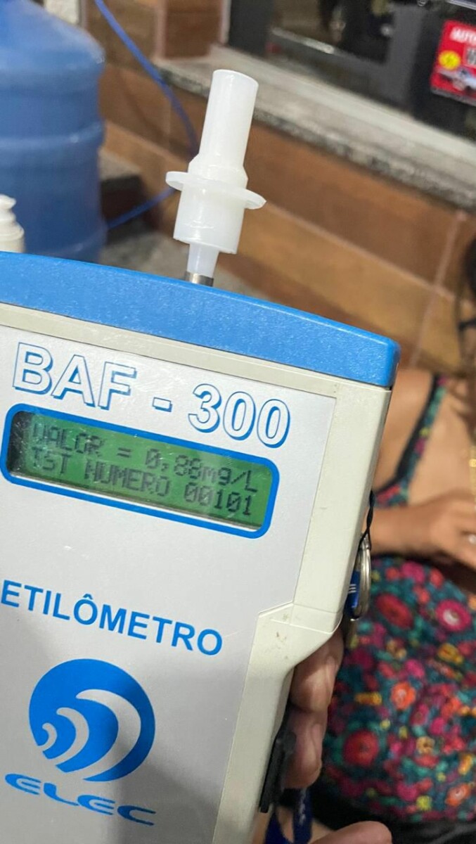 Na abordagem, a autora informou ser a condutora do veículo e declarou que estava vindo de uma distribuidora de bebidas, onde havia comprado bebida alcoólica (pinga), encontrado sobre o banco do passageiro. Posteriormente, foi conduzida até a barreira da Polícia Militar Rodoviária, onde se submeteu ao teste de alcoolemia (bafômetro), cujo resultado foi de 0,88 mg/l de ar alveolar, índice muito superior ao limite. Diante disso, foi dada voz de prisão à mulher. A perícia foi acionada para o local do fato, enquanto as vítimas foram socorridas pelo SAMU e pelo Corpo de Bombeiros.