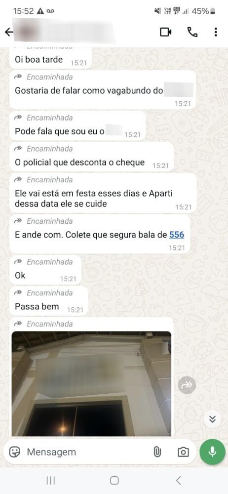 Após a equipe ter tomado conhecimento da existência de um crime de extorsão praticado contra um dos cantores da dupla, passou a diligenciar a fim de verificar a procedência das informações e confirmar a prática da conduta por parte da mulher e de um outro criminoso que estaria no Estado do Mato Grosso enviando áudios e fotos de arma, exigindo o pagamento de dinheiro que não era legítimo, e em unidade de desígnios, ambos estariam aterrorizando a família do cantor. Em razão de uma dívida não vencida, passaram a fazer postagem de fotos de armas de fogo e ameaças à integridade física do cantor.