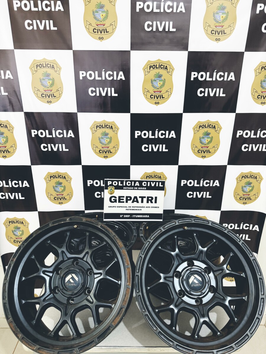 A Polícia Civil de Goiás, por meio do Grupo Especial de Repressão a Crimes Patrimoniais (Gepatri) de Itumbiara – 6ª DRP, recuperou nesta sexta-feira (14) quatro rodas de veículo furtadas, avaliadas em aproximadamente R$ 10 mil. O incidente que levou à recuperação das rodas ocorreu em 23 de junho deste ano, quando uma vítima comunicou o furto de quatro rodas do interior de um apartamento no Setor Central de Itumbiara. As rodas, de modelo D670 TECH MATTE BLACK 17X9, possuíam características muito específicas, incluindo uma pintura em preto que não era a original e um arranhão distintivo próximo à borda externa.