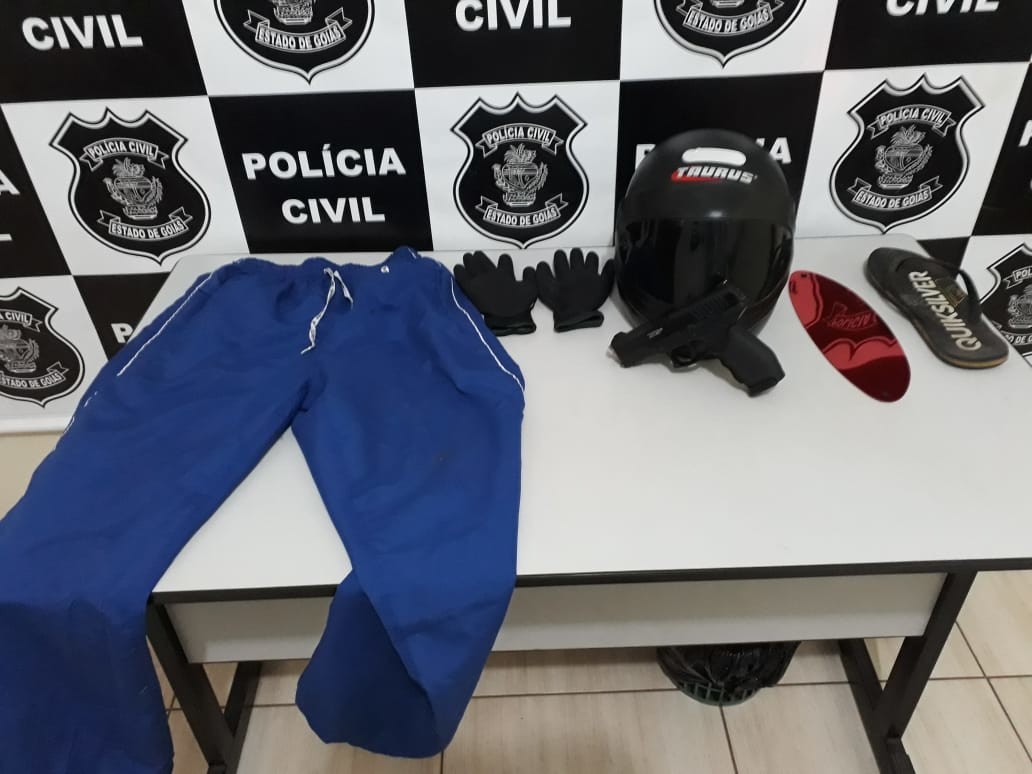 No dia do crime, policiais civis e militares da região efetuaram diversas diligências no sentido de prender os autores do referido assalto. Na ocasião, os policiais conseguiram apreender o simulacro de arma de fogo deixado no local do crime, bem como roupas e o capacete usados e dispensados em uma mata. “Percebendo que o cerco se fechava, ainda na noite de sexta-feira, um adolescente de 17 anos se apresentou na Delegacia”, contou Natalício. Devidamente acompanhado por representante legal, bem como por advogado constituído, o menor apontou Paulo Henrique como seu comparsa no assalto.