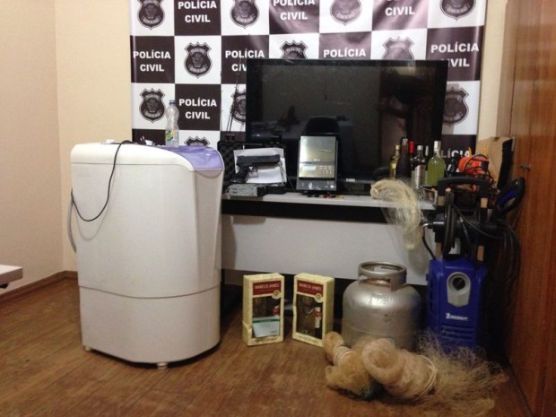Com os suspeitos, foram encontrados diversos objetos frutos de furtos nas fazendas, dentre os quais, máquina de lavar roupa, arma de pressão, eletroeletrônicos, notebooks, lavadoras de pressão, aparelhos de som, televisores de plasma, acessórios para pesca.