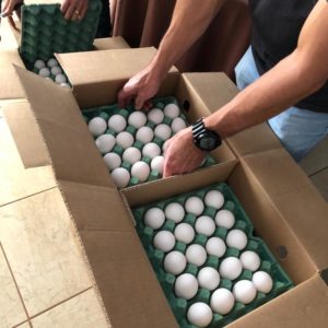 A carga de ovos doada é proveniente de uma ação de repressão ao tráfico de drogas realizada, na noite do último sábado (16), pela Polícia Rodoviária Federal (PRF) na região sudoeste do estado, ocasião em que foram apreendidos cerca de 280 kg de drogas em meio a caixas de ovos.