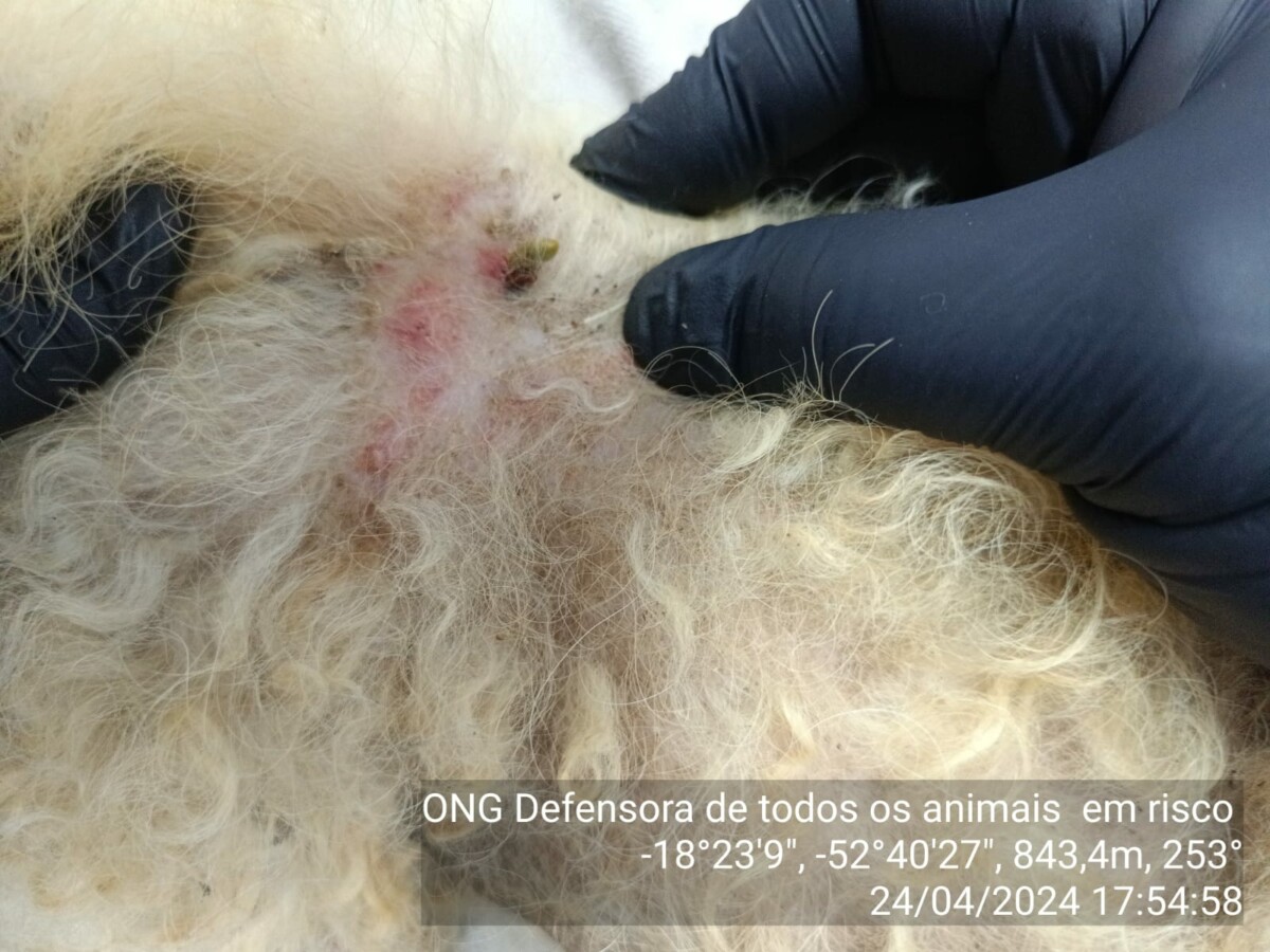 Na tarde de ontem (24), a Subdelegacia de Polícia de Chapadão do Céu e a ONG Adotar resgataram uma cadela Poodle de 8 anos de idade que possivelmente estava sendo negligenciada nos cuidados. Ela possuía carrapatos, dermatite e corrimento nos olhos com opacidade de córnea em ambos olhos. Imediatamente foi levada a um médico veterinário que realizou exame clínico. O responsável pelo animal foi identificado e será investigado pelo crime de maus-tratos a cão, já que assumiu o dever de cuidado. A cadela foi preventivamente abrigada na ONG Adotar.