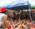 Além dos brinquedos individuais, as crianças puderam se divertir em um inflável para futebol de espuma, além de um pula-pula, tudo regado a refrigerante, cachorro quente e algodão doce. Uma dupla de palhaços realizou números circenses, além de ter representado uma peça cômica infantil do teatro de marionetes.