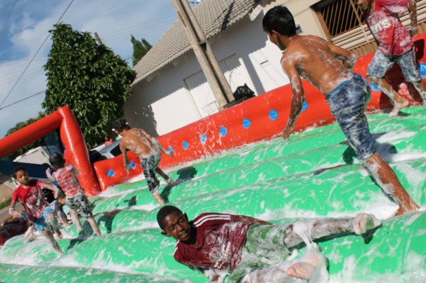 Além dos brinquedos individuais, as crianças puderam se divertir em um inflável para futebol de espuma, além de um pula-pula, tudo regado a refrigerante, cachorro quente e algodão doce. Uma dupla de palhaços realizou números circenses, além de ter representado uma peça cômica infantil do teatro de marionetes.