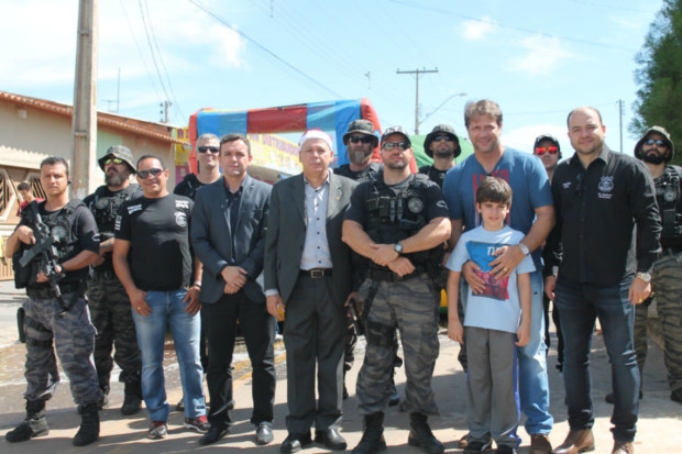 Estiveram presentes à festa que marcou a entrega dos brinquedos o delegado-geral da PCGO, Álvaro Cássio dos Santos, o gerente de Planejamento Operacional da Superintendência de Polícia Judiciária (SPJ), delegado Gustavo Ferreira, além de equipes da Delegacia Estadual de Repressão a Narcóticos (Denarc) e do Grupo Tático 3 (GT-3). Entusiasmadas e admiradas com a visão das viaturas dos grupos especializados, várias crianças tiraram fotos com os policiais das equipes especializadas.