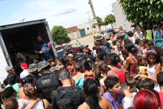 Se as cores da Polícia Civil de Goiás são o preto e o branco, essa definitivamente não foram os tons com que as crianças do bairro Real Conquista, na Região Sudoeste de Goiânia, vão passar seu natal. No final da manhã de quinta-feira (22), policiais civis entregaram mais de 600 brinquedos a crianças do setor.