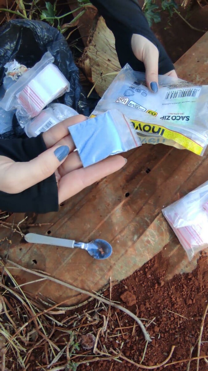 Em outro endereço, foi realizada a apreensão em flagrante de um menor por ato infracional análogo ao crime tráfico de drogas, devido à localização de grande quantidade de “maconha”.