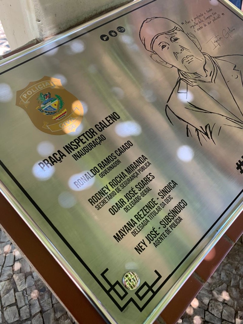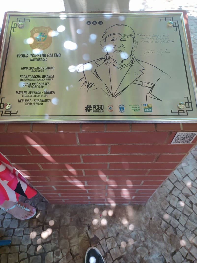 Como forma de reconhecimento por sua dedicação integral, de uma vida toda, a Polícia Civil resolveu fazer a ele um justa homenagem, dando seu nome à Praça do Complexo das Delegacias Especializadas. Agora, todos que chegarem à praça poderão ver uma placa em homenagem ao Inspetor Galeno e conhecer sua história e contribuição à Polícia Civil de Goiás. A inauguração da praça com a placa em seu nome foi realizada na manhã desta sexta-feira, 27 de novembro de 2020, e contou com a presença de familiares do Inspetor, do Delegado-Geral da Polícia Civil Odair José Soares, Delegada Titular da Deic e Síndica do Complexo de Delegacias Especializadas, Mayana Rezende e o presidente do Sindicato dos Policiais Civis (Sinpol), Paulo Sergio.