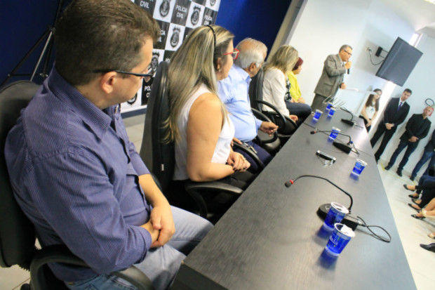 O delegado-geral da PCGO, Álvaro Cássio dos Santos, e o delegado-geral adjunto, Marcelo Aires, estiveram presentes no evento. Representantes das entidades de classe dos cargos formadores dos quadros da instituição também prestigiaram a ocasião.