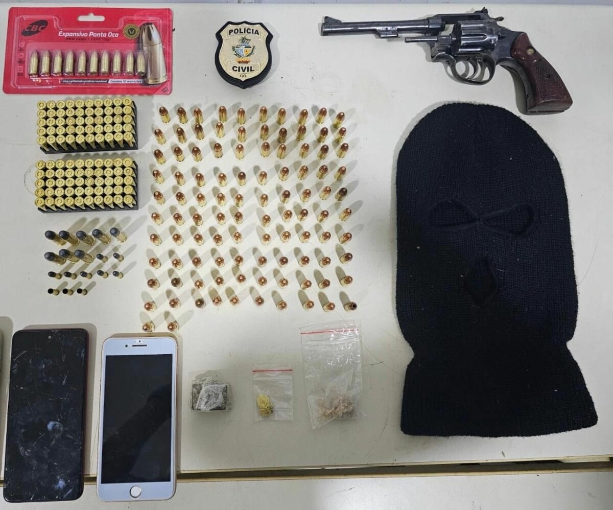 Diante da suspeita de envolvimento de grupos rivais ligados ao tráfico de drogas, foi montada força-tarefa para localizar e prender os envolvidos. Após diligências, a equipe identificou dois veículos usados no crime e localizou o autor principal no Setor Jacutinga. Durante a abordagem e busca no imóvel, foram apreendidos: uma arma de fogo, dezenas de munições de calibres permitido e restrito, drogas, celulares, uma balaclava usada no crime, além de provas diversas. A Polícia Científica periciou os veículos, com apoio do Setor de Papiloscopia da 14ª DRP e do Geic.