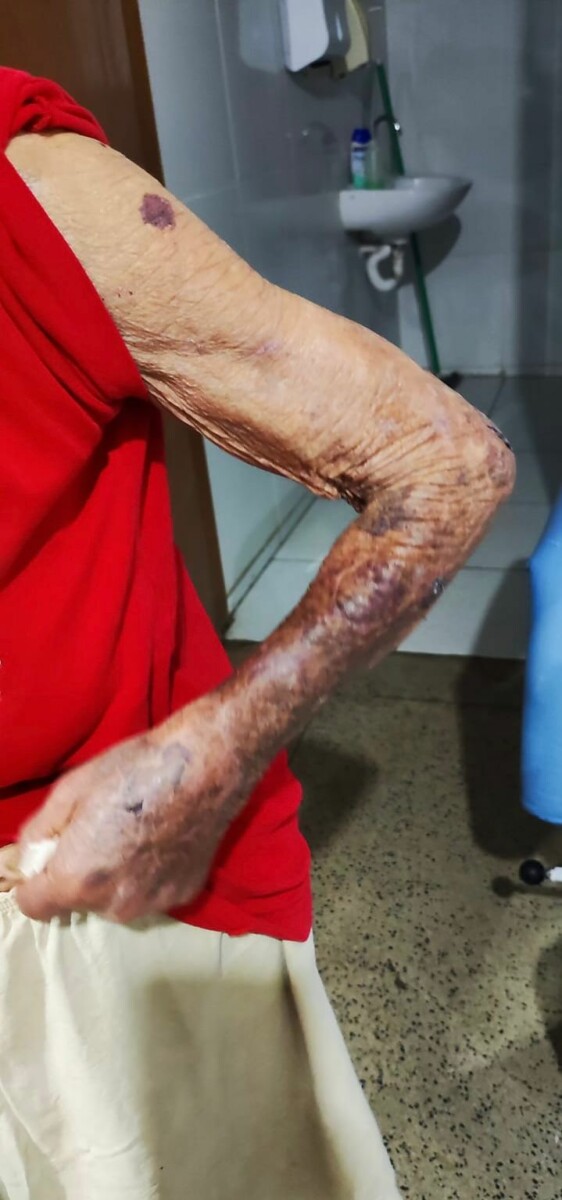 Diante da denúncia, a equipe policial deslocou-se até o hospital para averiguar a situação. No local, os policiais constataram que a vítima apresentava múltiplas lesões corporais e grande dificuldade na fala. Ainda assim, conseguiu relatar que, na noite anterior, foi agredida com socos, chutes e empurrões, por seu neto.