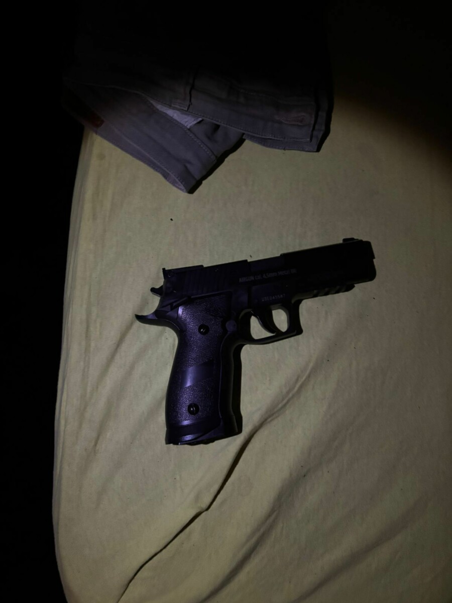 Diante dos fatos, a equipe realizou diversas diligências e localizou o autor. Durante a diligência, a arma utilizada para o cometimento dos crimes foi localizada em cima do guarda-roupas do quarto do autor. O aparelho celular utilizado para fotografar a vítima foi apreendido.