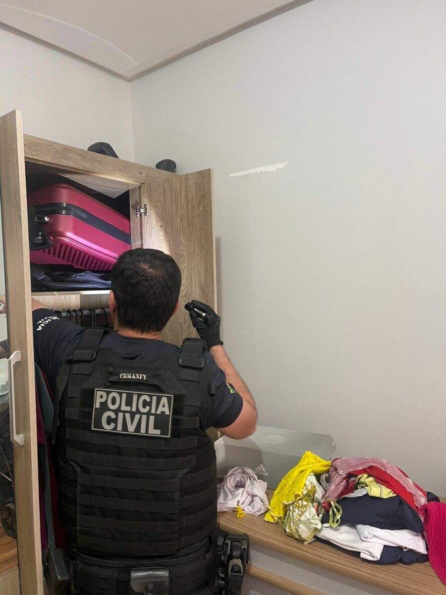 Os policiais civis da Deam, logo após os fatos, prenderam o autor em flagrante delito. O investigado continua preso, à disposição da Justiça. Também hoje as cautelares de buscas e apreensões foram cumpridas, na residência do autor e no seu local de trabalho. O andamento da investigação segue em sigilo.