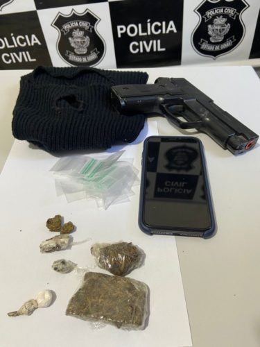 Durante as buscas domiciliares nas casas dos suspeitos, os policiais civis localizaram porções de maconha, cocaína, haxixe, expressiva quantidade de dinheiro, além de um simulacro, motivo pelo qual também foram autuados em flagrante.