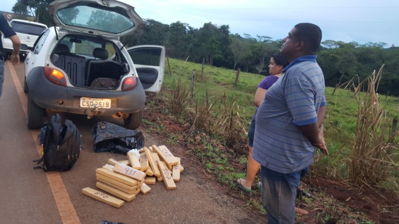 Nesta quinta-feira (05), Adalgiza Ribeiro da Cruz e Eduardo Jorge Cintra foram presos na GO-230, a 10 km de Goianésia. O casal transportava no porta-malas de seu veículo FORD/KA, cerca de 40 kg de maconha e quase 500g de cocaína. Em seguida, foram presos os irmãos Lucas Carlos Vieira e Alexandre Carlos Vieira. Eles foram presos em casa, no Bairro Covoá, visto que, como de rotina, parte da droga apreendida com o casal seria entregue aos irmãos.