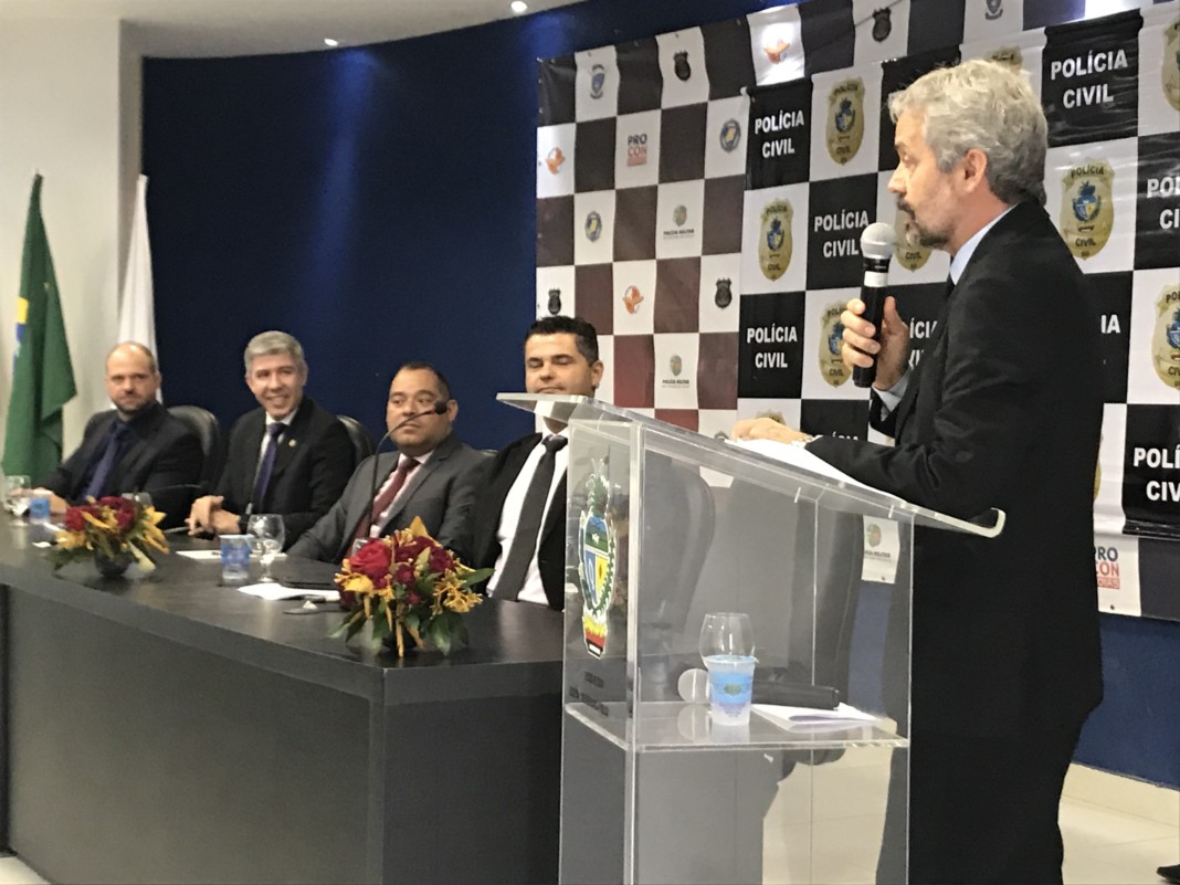 Estiveram presentes o delegado-geral da PCGO, André Fernandes de Almeida; o delegado-geral adjunto, Reinaldo Koshiyama; o superintendente de Polícia Judiciária, André Ganga, e o assessor-geral adjunto e assessor jurídico e técnico-policial da PCGO, Rilmo Braga.