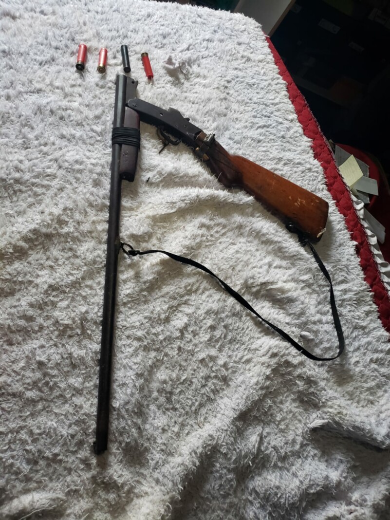 Durante o cumprimento dos mandados judiciais, na residência de um dos investigados, os policiais civis localizaram e apreenderam uma espingarda, de um cano, calibre .32; quatro munições, calibre .32; e uma munição, calibre .22, além de uma motocicleta marca HONDA/CG 125 FAN, cor preta, produto do crime de furto, ocorrido na cidade de Barra do Garças (MT), no dia 16 de abril de 2020.