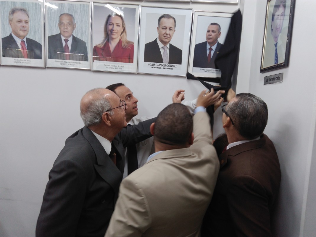 O delegado-geral da Polícia Civil de Goiás, André Fernandes, e o delegado-geral adjunto, Reinaldo Koshiyama, receberam seus predecessores, respectivamente delegados Álvaro Cássio e Marcelo Ayres, para o descerramento oficial do retrato do ex-delegado-geral na galeria de diretores da PCGO, atualmente localizada na Sala do Conselho Superior da Polícia Civil. A solenidade se deu na manhã de sexta-feira (10).