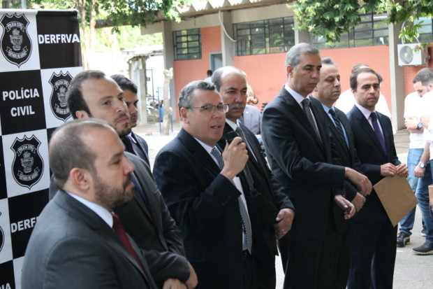 A Secretaria de Segurança Pública e Administração Penitenciária (SSPAP), por meio da Polícia Civil, entregou nesta quarta-feira (01/02), a reforma da Delegacia de Repreensão a Furtos e Roubos de Veículos Automotores (DERFRVA). O vice-governador José Eliton, o secretário em exercício da SSPAP, coronel Edson Costa, e o delegado-geral da PC, Álvaro Cássio, participaram da cerimônia.