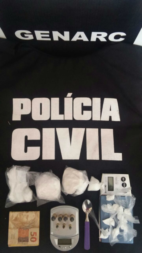 Realizaram a diligência a distrital local e o Grupo Especial de Repressão a Narcóticos (Genarc) da 15ª Delegacia Regional de Polícia Civil (DRPC). Foram apreendidas, no quarto da mãe do autor, várias porções de cocaína, duas balanças de precisão, munições de arma de fogo, dinheiro, além de um veículo Volkswagen Bora, o qual era utilizado na distribuição das drogas comercializadas.