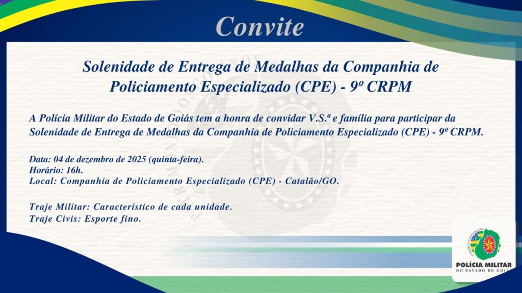 SOLENIDADE DE ENTREGA DE MEDALHAS DA COMPANHIA DE POLICIAMENTO ESPECIALIZADO (CPE) – 9º CRPM
