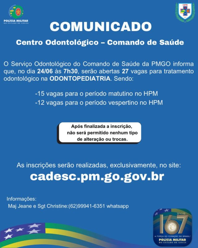 COMUNICADO – CENTRO ODONTOLÓGICO – COMANDO DE SAÚDE Publicado em 23 junho 2025 Última Atualização em 23 de junho de 2025 Categoria Notícias em Destaque