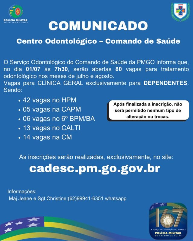 COMUNICADO – CENTRO ODONTOLÓGICO – COMANDO DE SAÚDE Publicado em 25 junho 2025 Última Atualização em 25 de junho de 2025 Categoria Notícias em Destaque