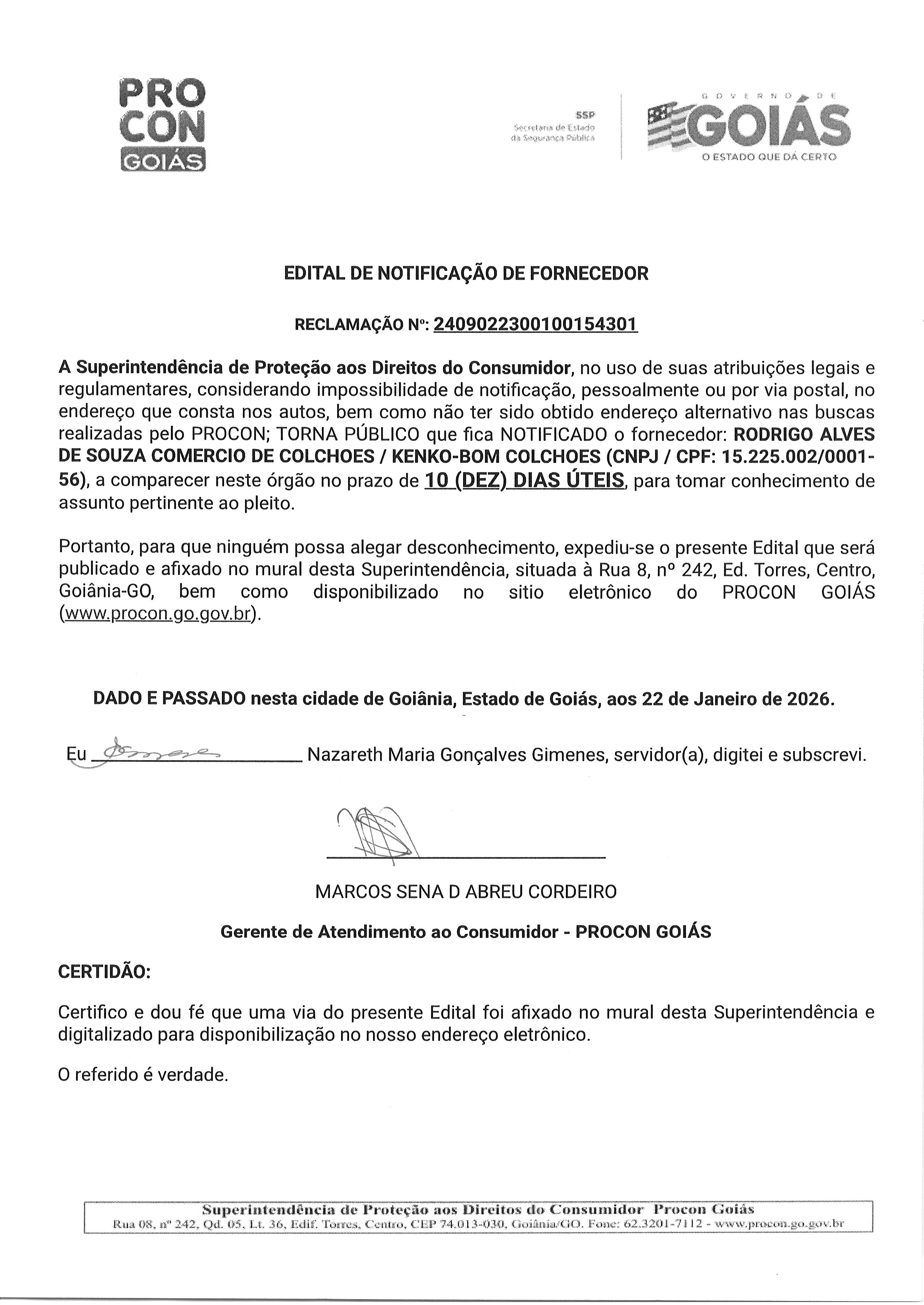 EDITAL DE NOTIFICACAO FORNECEDOR N° 2409022300100154301 RODRIGO ALVES DE SOUZA Última Atualização em 4 de fevereiro de 2026 Categoria Editais de Notificação, Fornecedor