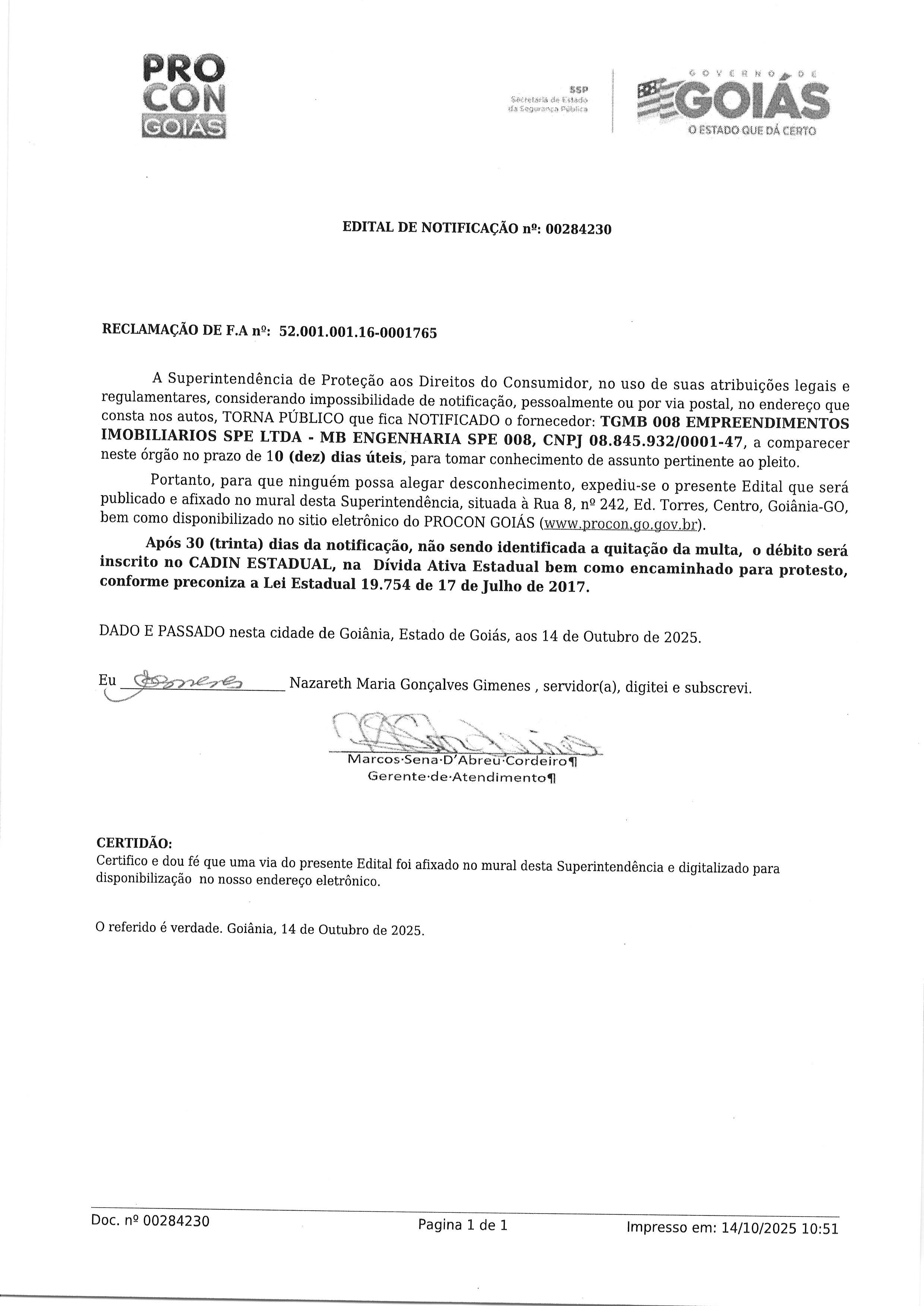 EDITAL DE NOTIFICACAO N° 00284230 FORNECEDOR TGMB 008 EMPREENDIMENTOS IMOBILIARIOS SPE LTDA Última Atualização em 20 de outubro de 2025 Categoria Editais de Notificação, Fornecedor