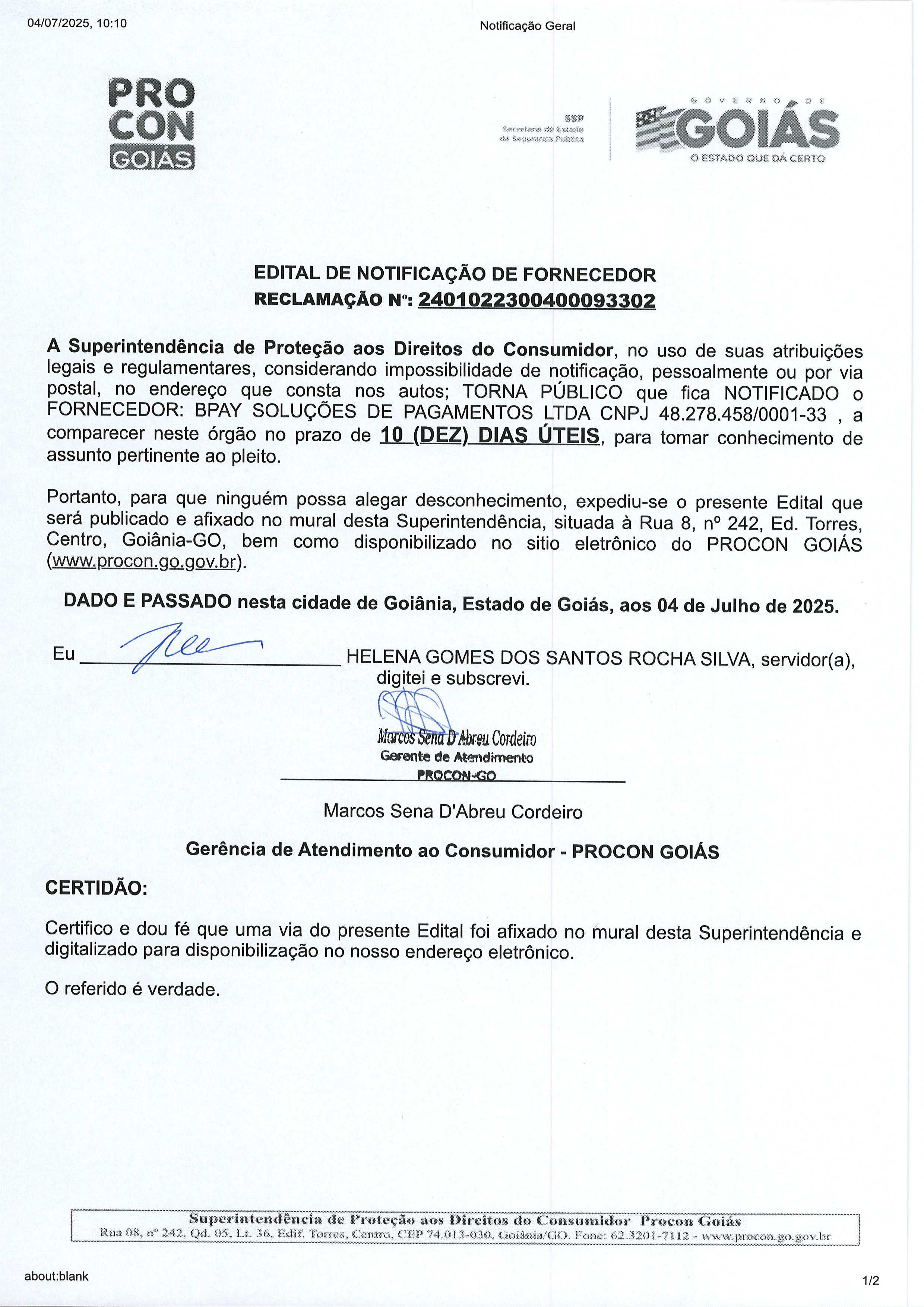 Edital de Notificação Nº 2401022300400093302 , Fornecedor BPAY SOLUÇÕES DE PAGAMENTOS LTDA Última Atualização em 9 de julho de 2025 Categoria Editais de Notificação, Fornecedor