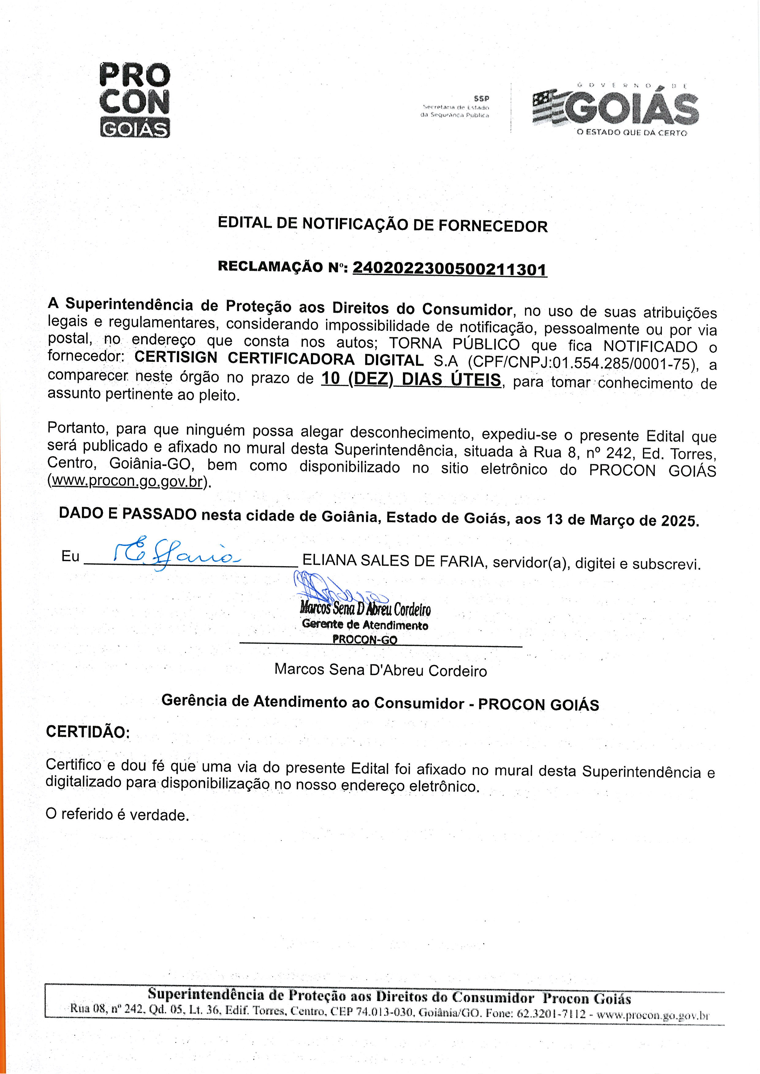 Edital de Notificação nº 2402022300500211301, Fornecedor CERTISIGN CERTIFICADORA DIGITAL Última Atualização em 25 de março de 2025 Categoria Editais de Notificação, Fornecedor