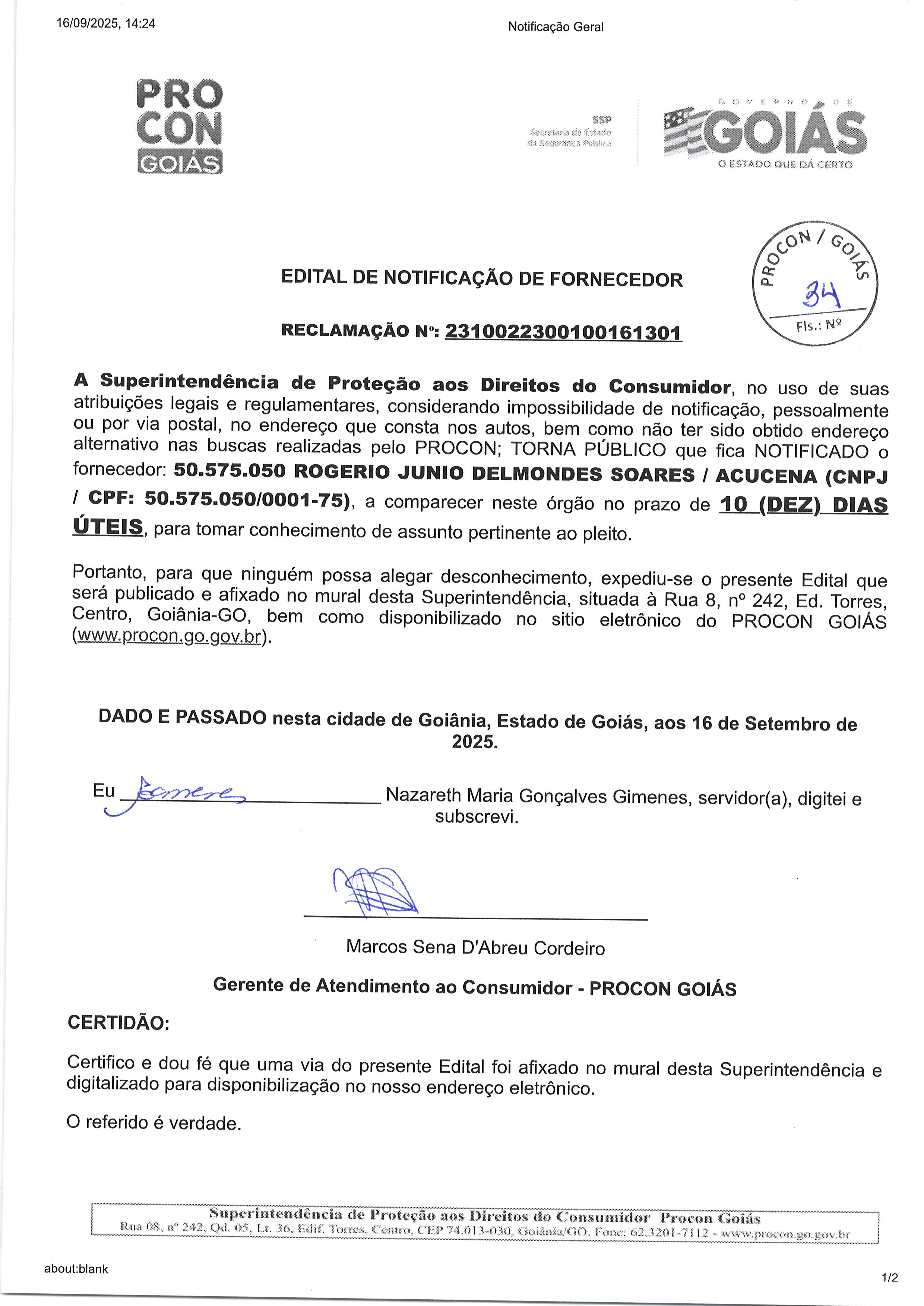 EDITAL DE NOTIFICAÇÃO Nº2310022300100161301 , Fornecedor 60675050 ROGERIOJUNIO BELMONDES SOARES Última Atualização em 6 de outubro de 2025 Categoria Editais de Notificação, Fornecedor