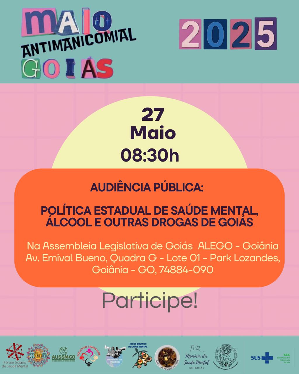 Tema: Política Estadual de Saúde Mental, Álcool e Outras Drogas do Estado (Evento em referência ao “Maio Antimanicomial de Goiás”)