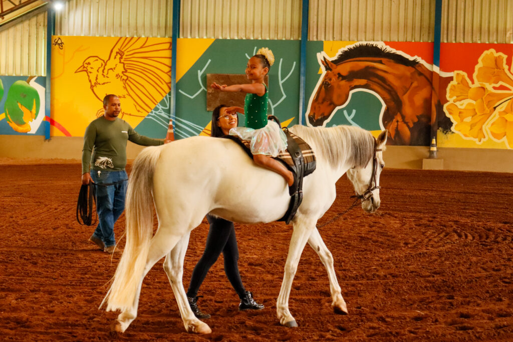 A programação contou com demonstrações da evolução dos pacientes atendidos, apresentação de volteio adaptado, oficina de manejo com o cavalo, além de um momento de integração das famílias com os animais. A Cavalaria da Polícia Militar de Goiás (PMGO) também marcou presença, realizando uma demonstração que encantou o público.