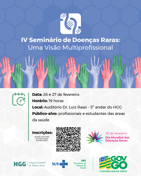 Com esse objetivo, a unidade de saúde realiza, nos dias 26 e 27, a partir das 19 horas, o 4º Seminário de Doenças Raras: uma Visão Multiprofissional, voltados para profissionais e estudantes da área da saúde. A iniciativa celebra o Dia Mundial das Doenças Raras, comemorado anualmente em 28 de fevereiro.