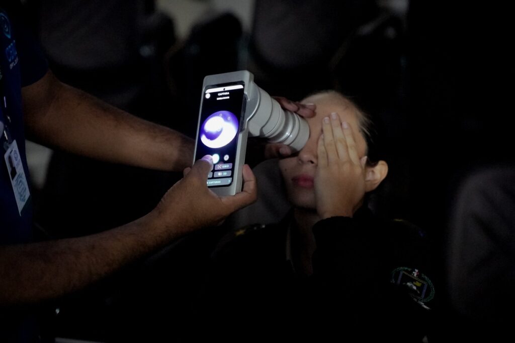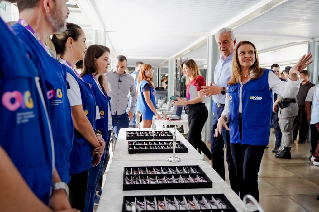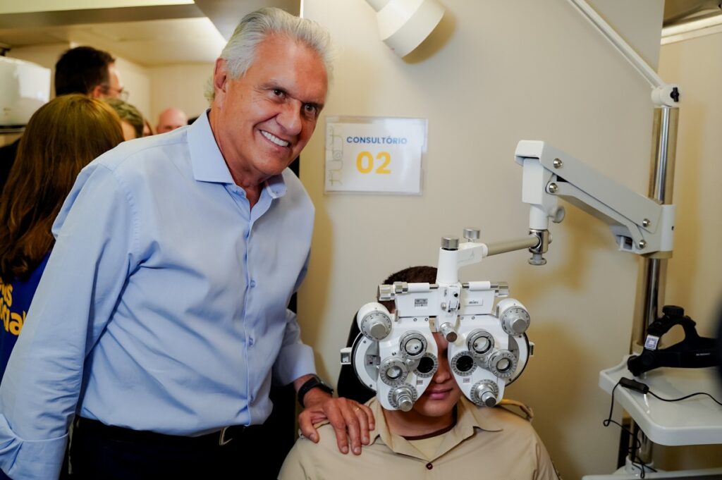 O Governo de Goiás, por meio da Secretaria de Estado da Saúde e em parceria com o Centro de Referência em Oftalmologia da Universidade Federal de Goiás (Cerof-UFG), lançou, nesta terça-feira (26/11), o Olhar para TodosO programa público, o maior de saúde oftalmológica do Centro-Oeste, terá como foco estudantes da rede estadual de ensino e jovens em situação de vulnerabilidadeO ônibus do Cerof/UFG é equipado com quatro consultórios e percorrerá todas as 1.114 escolas estaduais para atender os mais de 495 mil alunosDurante a visita, as equipes do Cerof realizarão uma bateria de exames oculares entre os estudantes, incluindo até o de fundo do olho, e se necessário, já os alunos já recebem pedido para confecção de óculosDurante o lançamento, o governador Ronaldo Caiado conheceu os óculos que integrarão o programa e que serão confeccionados de forma gratuita pela Organização das Voluntárias de Goiás (OVG)Caiado também conheceu as instalações da unidade móvel do Cerof/UFG e todo o circuito de exames aos quais os estudantes serão submetidosO secretário de Estado da Saúde, Rasível Santos, explicou ao governador e à primeira-dama, Gracinha Caiado, que os alunos também serão inseridos na Regulação Estadual, caso necessitem de cirurgiaO lançamento do Olhar para Todos foi feito no Colégio Estadual da Polícia Militar de Goiás Ayrton Senna, em GoiâniaA unidade móvel e toda a equipe ficaram no local dois dias, realizando exames e pedidos para confecção de óculos para os 1.240 alunos do colégioGovernador Caiado, primeira-dama e coordenadora do Goiás Social, secretário Rasível Santos, dr Marcos Ávila, fundador do Cerof, professora Angelita Lima, reitora da UFG, Júnior Câmara, presidente do Grupo Jaime Câmara e outras autoridades no lançamento do eventoDurante o discurso, o titular da SES-GO informou que o programa contará com investimento na ordem de R$ 36 milhões do Governo de GoiásGovernador Ronaldo Caiado ao lado dos primeiros estudantes beneficiados com os exames e entrega dos óculos no programa Olhar para Todos