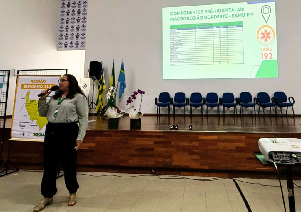 A superintendente de Regionalização da SES Érika Lopes Rocha Batista abre a Oficina do Plano de Ação Regional (PAR) da Rede de Urgência e Emergência (RUE) em FormosaO encontro voltado para a Macrorregião Nordeste aconteceu no Auditório da UEG – Campus Formosa, reunindo gestores municipais, técnicos e profissionais de saúdeGerente de Regulação e Ações de Urgência da SES, Danielly Silvestre, explica os objetivos do encontro. “A RUE pretende garantir atendimento no lugar certo, no tempo certo e com qualidade para toda a população”, explica