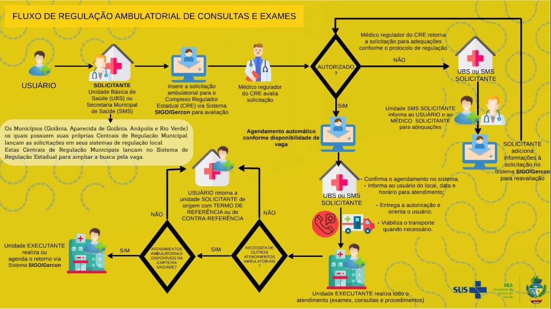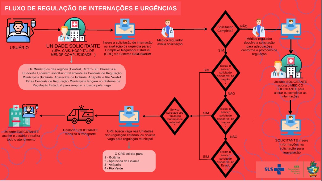 O processo de regulação é operacionalizado através do trabalho integrado das gerências de regulação ambulatorial, cirurgias eletivas, urgência e emergência e de internação. Além disso, a Superintendência de Regulação, Controle e Avaliação presta assessoria técnica aos municípios do Estado, apoiando as regionais de saúde e acompanhando e supervisionando as ações executadas nas áreas de sua