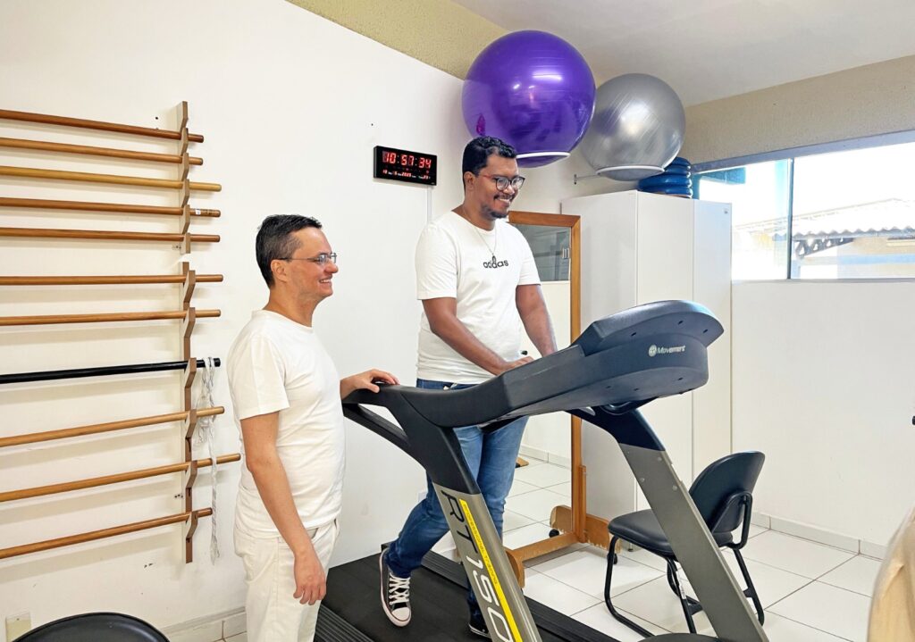 Segundo a fisioterapeuta Katiuscia Silva Gomes, a reabilitação começou ainda durante a internação. Após receber alta médica, ele passou a ser atendido no ambulatório do Ceap-Sol, já com algum controle motor e utilizando andador. As sessões ocorriam duas vezes por semana, com foco na recuperação da autonomia funcional. “Trabalhamos o fortalecimento muscular, o equilíbrio e a coordenação motora. Hoje, Marcos é totalmente independente e apto a retomar suas atividades de vida diária”, afirma a profissional.