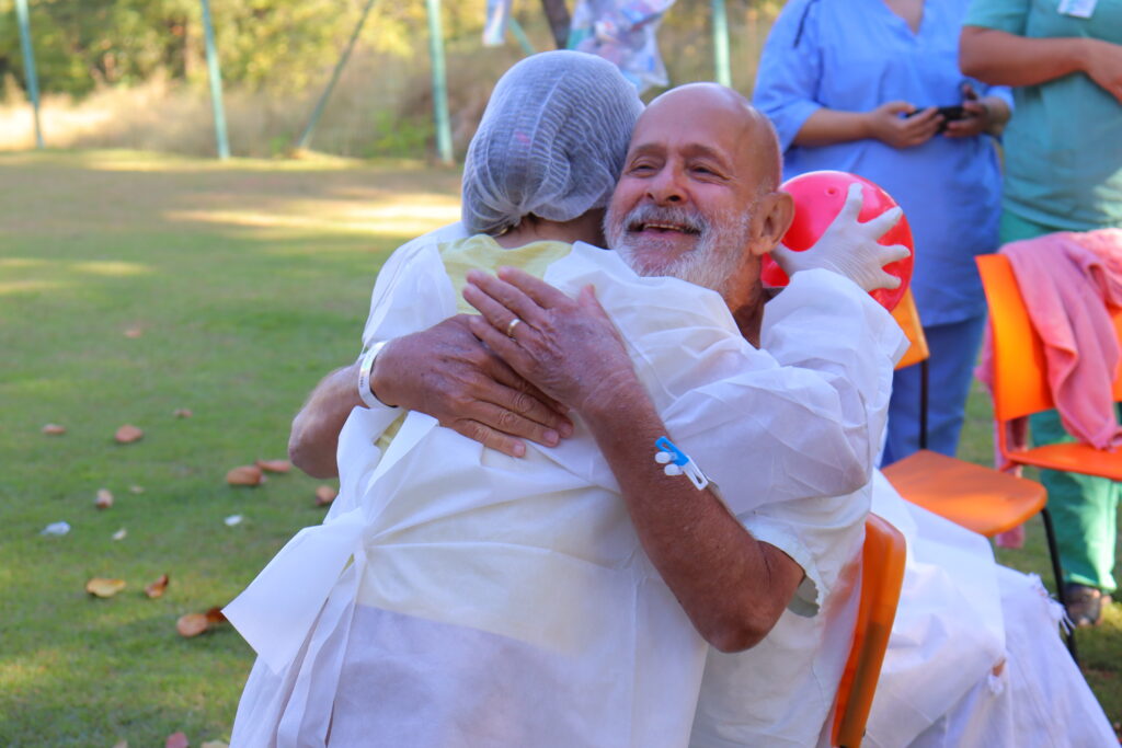 Após cinco meses sem ver os netos, o paciente Marizan Luis da Silva, de 66 anos, viveu uma tarde inesquecível com a família durante uma ação de humanização promovida pela equipe da Unidade de Cuidados Prolongados do Hospital Estadual de Dermatologia Sanitária Colônia Santa Marta (HDS).