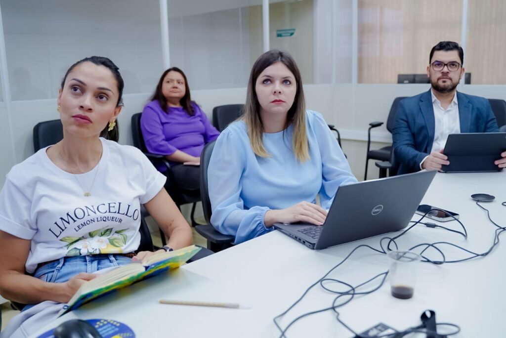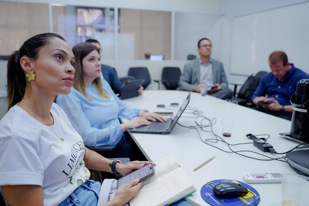 A coordenação do gabinete é liderada pela SES-GO, enquanto as unidades municipais executam as ações na gestão e área hospitalar, garantindo um monitoramento eficaz do cenário geralOs gestores da SES-GO analisaram as informações repassadas pelos membros dos 13 gabinetes das unidades de saúde da capitalSecretário adjunto Sérgio Vencio e subsecretário Luciano Moura observamn os dados relacionados ao número de internações nas UTIs