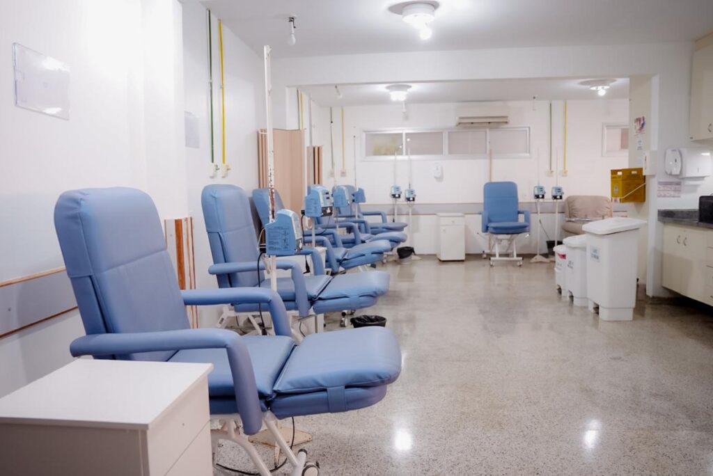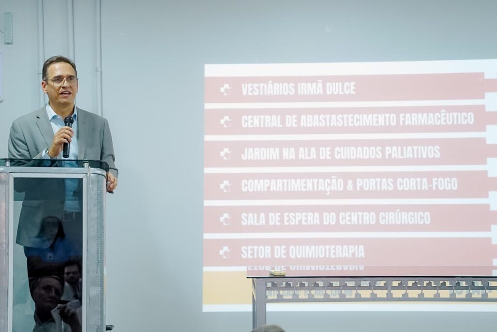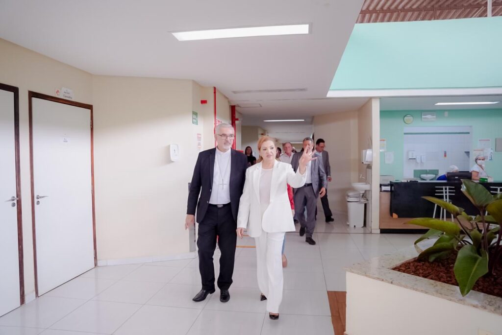 A Santa Casa de Misericórdia passou por ampla reforma para proporcionar um atendimento ainda mais humanizado e de qualidade à populaçãoAs obras, realizadas em diferentes espaços da unidade, foram apresentadas pela direção da Santa Casa a personalidades da Igreja, do Município e do EstadoO secretário-adjunto da SES-GO, Sérgio Vencio, representou o governador Ronaldo Caiado na solenidadeO arcebispo de Goiânia, dom João Justino (à esquerda), anunciou na que a superintendente-geral, Irani Moura permanece à frente da Santa CasaForam reformados a Central de Abastecimento Farmacêutico, o jardim na Ala de Cuidados Paliativos e o Setor de Quimioterapia, entre outrosA superintendente-geral Irani Ribeiro acentuou que se sente honrada por ter sido convidada a permanecer no cargo que ocupa desde 2017