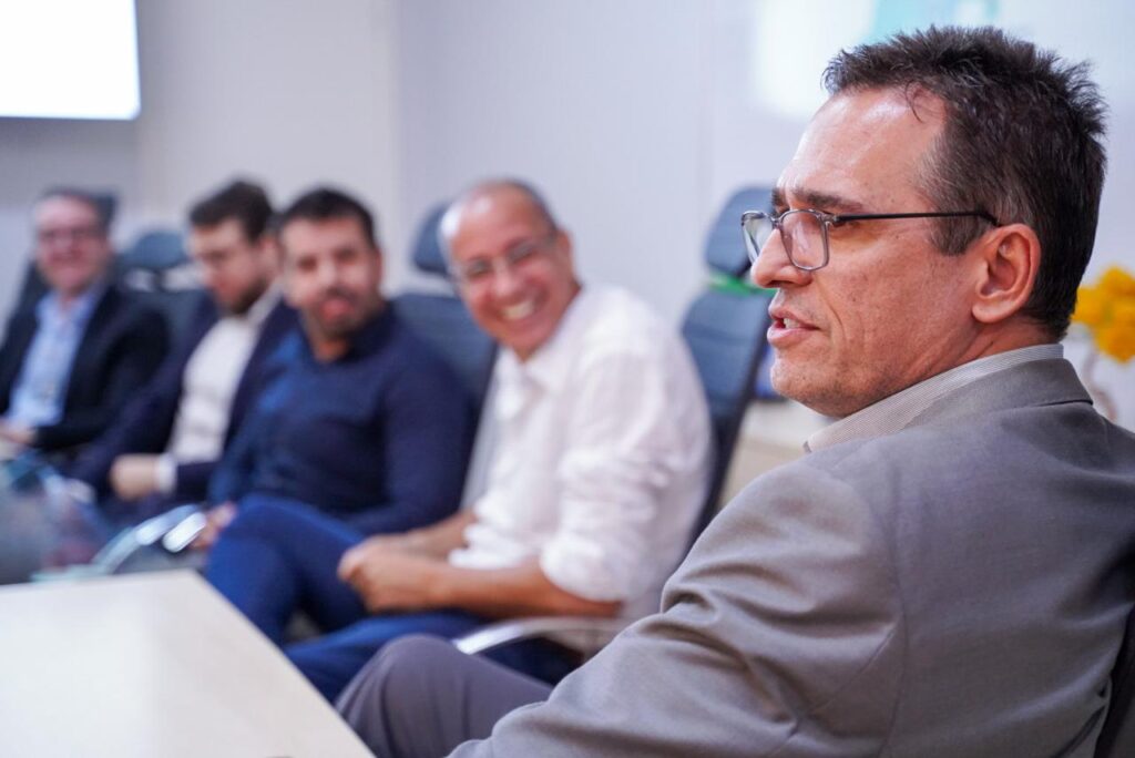 O secretário Rasível Santos e gestores da SES-GO receberam profissionais que atuam com a Medicina do SonoA equipe foi liderada por Dácio Almeida Pereira, diretor do Núcleo de Ensino e Pesquisa em Eletrofisiologia e Medicina do SonoDácio Pereira e os gestores da SES-GO destacaram a importância da medicina do sono para a garantia das boas condições de saúde