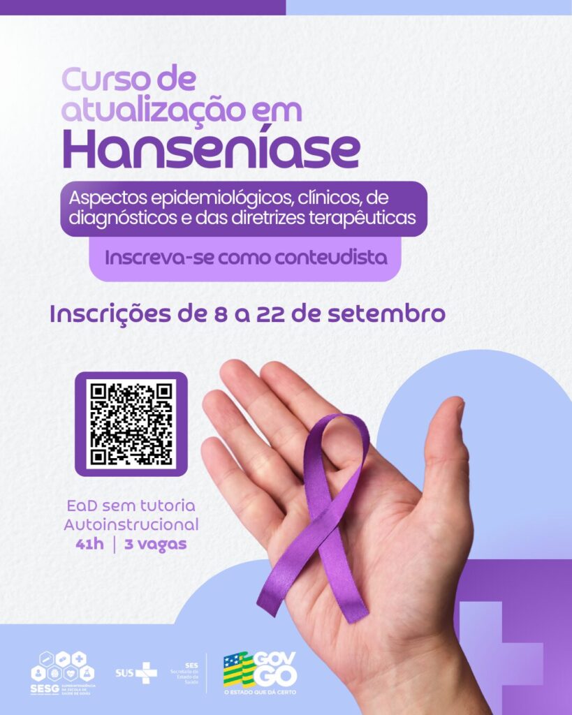 A Secretaria de Estado de Saúde de Goiás (SES-GO), por meio da Superintendência da Escola de Saúde de Goiás (Sesg), abriu inscrições para a seleção de docentes conteudistas que vão atuar no curso Atualização em Hanseníase: Aspectos Epidemiológicos, Clínicos, de Diagnóstico e das Diretrizes Terapêuticas. O edital nº 30/2025 prevê o preenchimento de três vagas imediatas, além da formação de cadastro de reserva.