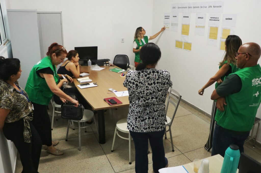 Técnicos do Gabinete de Crise da SES discutem informações obtidas na UPA NoroesteTécnicos da SES e da SMS de Goiânia vão acompanhar o registro de informações sobre o funcionamento da unidadeAs informações na UPA serão coletadas duas vezes por dia por meio de formulários e planilhas