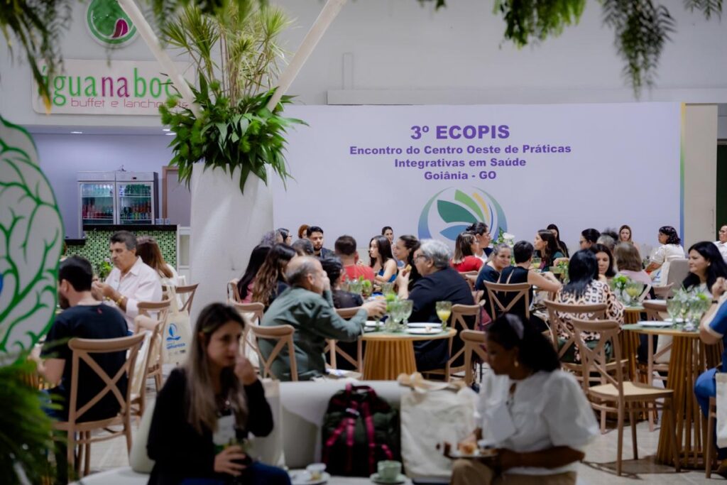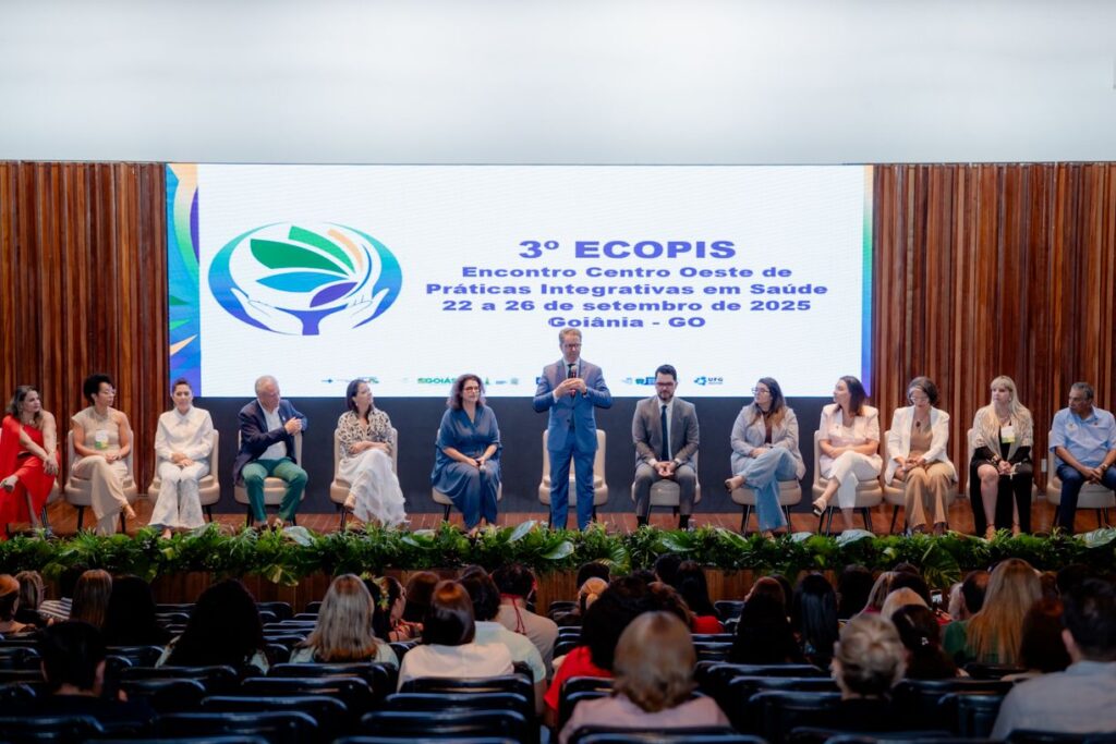 A SES-GO promoveu entre os dias 22 e 26/09 o Encontro Centro-Oeste de Práticas Integrativas em Saúde (Ecopis)A abertura do evento contou com a participação do secretário Rasível Santos, de gestores da SES e de especialistas em medicina integrativaA solenidade de abertura contou com a apresentação da Orquestra dos Violeiros, entre outras atraçõesO personagem Zé Gotinha, símbolo das Campanhas de Vacinação, marcou presença no Ecopis e interagiu-se com o secretário Rasível SantosA mesa de abertura do Ecopis teve a participação de gestores da SES e especialistas de diferentes entidades na área do PaisO secretário adjunto, Sérgio Vencio, ao lado de servidoras da SES, destacou a importância da espiritualidade no cuidado em saúde