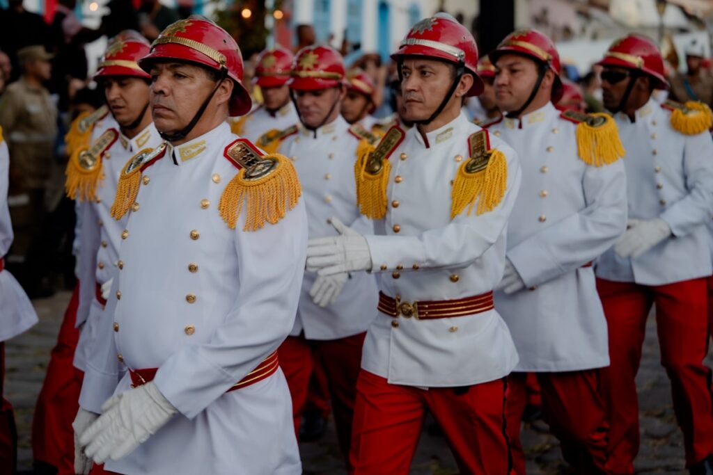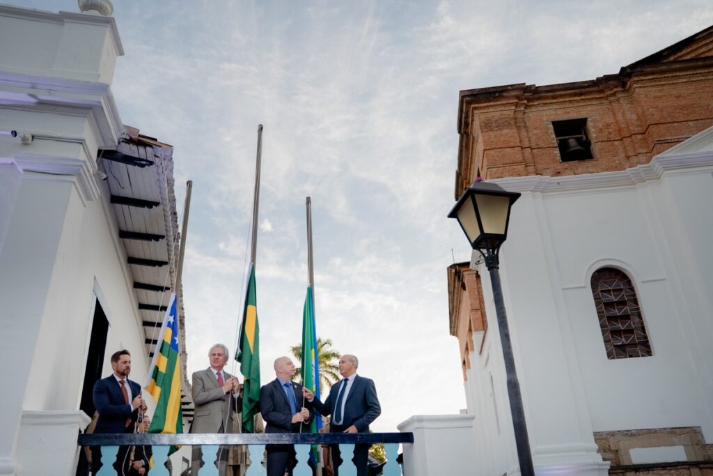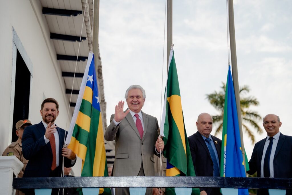 O governador Ronaldo Caiado transferiu simbolicamente os Poderes Executivo, Legislativo e Judiciário para a cidade de GoiásA transferência compôs a programação do aniversário da cidade de GoiásRonaldo Caiado fez um balanço da gestão estadual e destacou que atualmente Goiás é referência no PaísO titular da SES-GO, Rasível Santos, prestigiou a solenidade ao lado de outras personalidadesA cerimônia teve em sua programação um desfile da Polícia MilitarComponentes do Corpo de bombeiros Militar do Estado de Goiás também desfilaram durante a solenidade