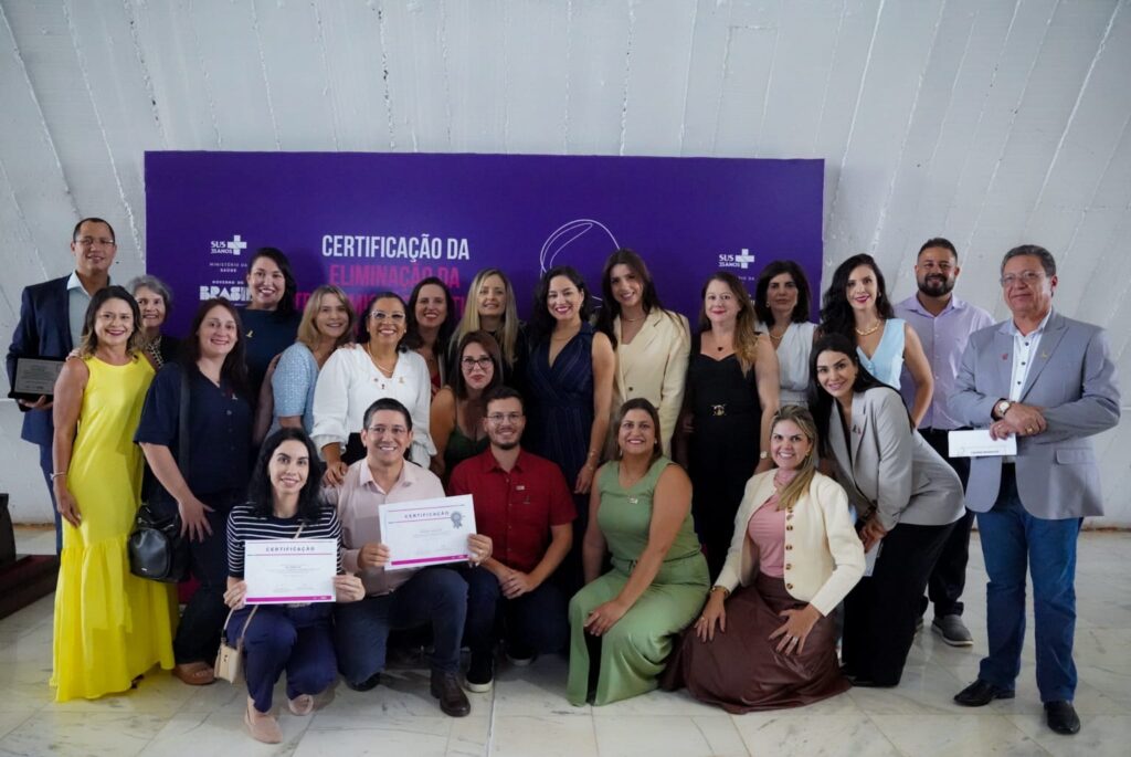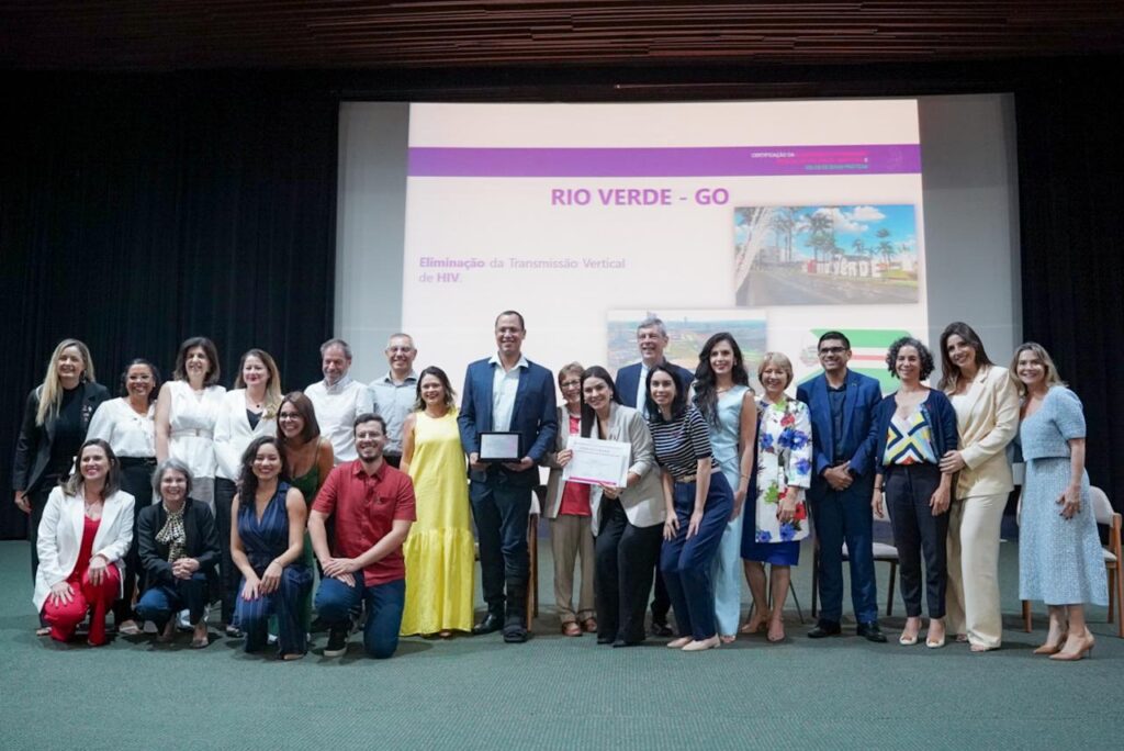 A SES celebrou a certificação nacional de Caldas Novas, Senador Canedo e Rio Verde por avanços na eliminação da transmissão vertical de HIV e outras infecçõesO título foi entregue durante a Cerimônia de Certificação Subnacional, realizada no Teatro Pedro Calmon, em Brasília (DF)A certificação representa o resultado da estratégia técnica desenvolvida pela SES para apoiar e qualificar os municípios goianosO ministro da Saúde, Alexandre Padilha, destacou que a conquista demonstra que eliminar doenças é possível quando há ações conjuntas e contínuasEquipe de Goiás celebra a certificação, fruto de um trabalho construído entre os profissionais dos municípios e da SES-GONo evento foi destacado que Goiás é referência no País. Dos 16 municípios com mais de 100 mil habitantes, 60% conquistaram selos nacionais